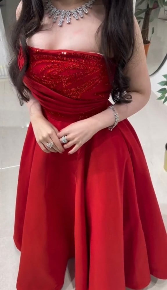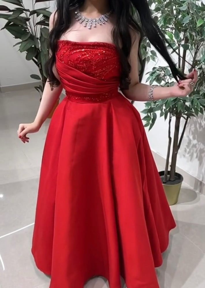 - اللون: أحمر زاهي يبرز جاذبية الفستان ويجعلكِ تتألقين في كل مناسبة.